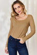 Elevate your everyday style with this women’s ribbed long sleeve T-shirt—an essential piece designed for comfort, versatility, and a flattering fit.