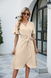 This Tie Waist Surplice Dress combines casual comfort with feminine charm. With flutter sleeves, a wrap-style neckline, and a tulip hem, it’s a versatile piece for any occasion. Lightweight and breathable, it’s easy to wear all day long.