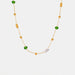 Brighten up your jewelry collection with this multi-layer beaded necklace, crafted from titanium steel and finished with 18K gold plating for a touch of elegance. Featuring colorful natural stones, synthetic pearls, and malachite accents, this necklace combines durability with vibrant charm.